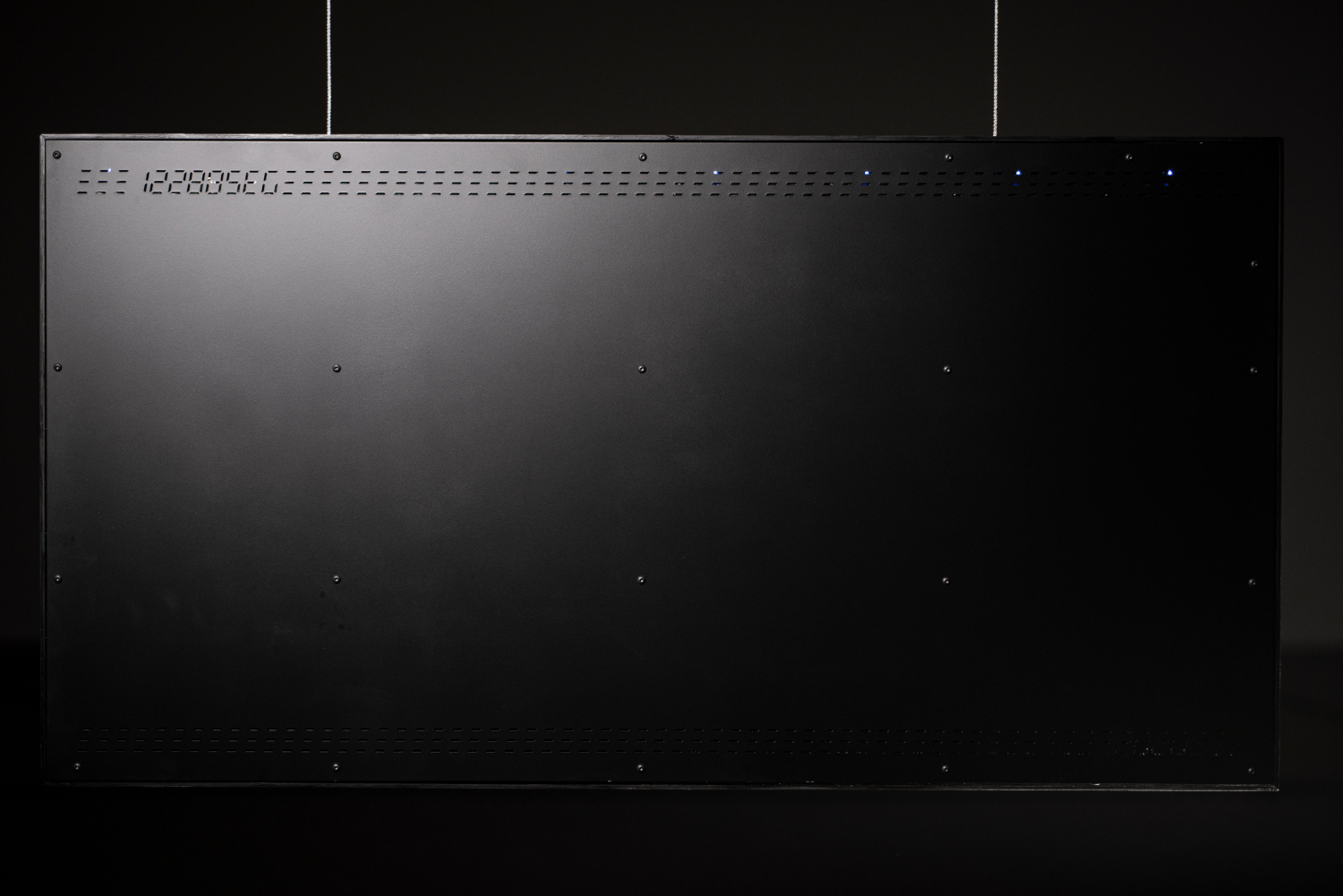 The LED displays are encased in an “smoked” acrylic box and the back plate is made from laser cut steel.